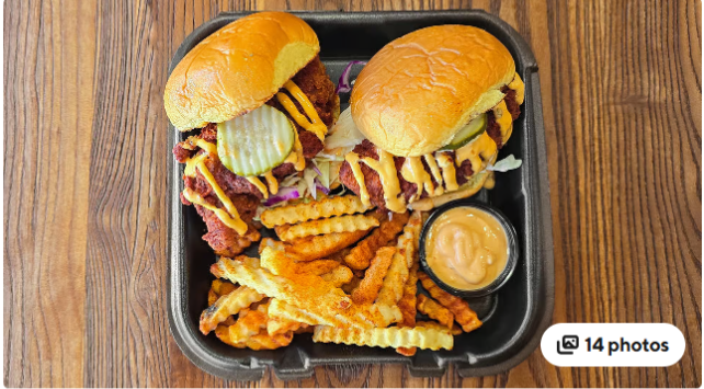2 Sliders with fries. All slider served with slaw, pickles and side of secret sauce.