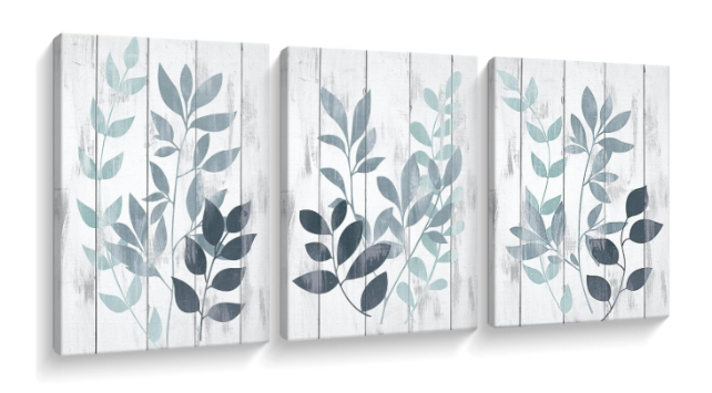 Takfot Leaf Wall Art Yellow Grey Leaves Canvas Painting Vintage Botanical Pictures Rustic Plants Artwork Home Decor Stretched and Framed Artwork for Bathroom Living Room 1216 Inch, 3 Panels