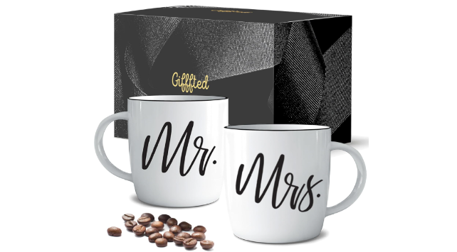 Triple Gifffted Mr and Mrs Coffee Mugs Couples Gifts Ideas for Christmas Wedding Anniversary Engagement Valentines,his Hers Present,husband Wife,him Her,men Women,bride Groom,newlyweds,ceramic 380ml