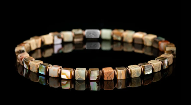 Complete your outfit with our Tiger Eye-Landscape Jasper-Yellow Jade Cube Bracelet I (6mm). Handcrafted in The Netherlands by professional artisans with the best Nature has to offer and finished with 925 Sterling Silver.